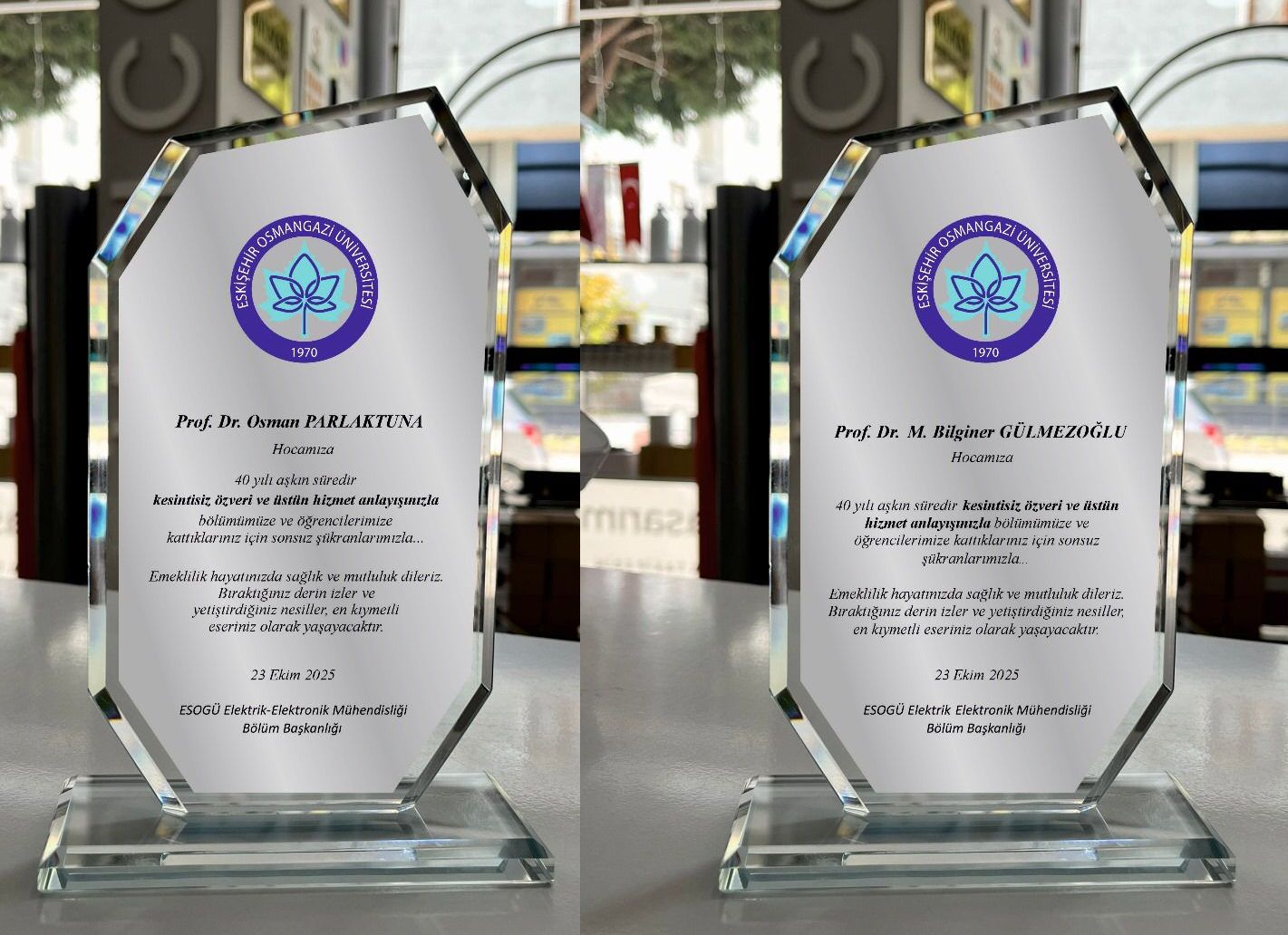 Eylül 2025 içinde Bölümüzün iki kıymetli hocası emekli oldu. Emekli olan Prof. Dr. Osman PARLAKTUNA ve Prof. Dr. M. Bilginer GÜLMEZOĞLU hocalarımız için Bölüm sohbet odasında sade ama samimi bir tören düzenlendi. Törende hocalarımıza birer plaket ve emeklilik hediyesi takdim edildi. Hocalarımız da pasta keserek törene katılan hocalarımıza ikram ettiler (23 Ekim 2025).